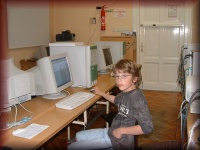 Csani a gép előtt |