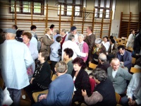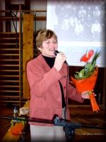 Kánvási Erzsébet a találkozó szervezője beszél a megjelentekhez |