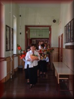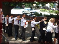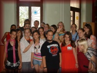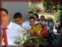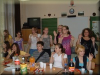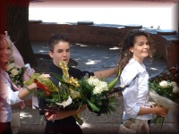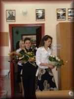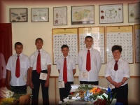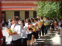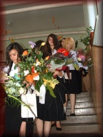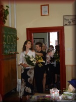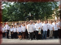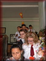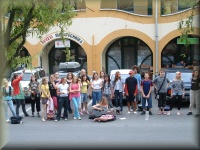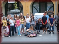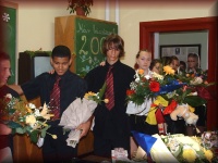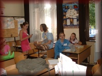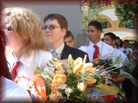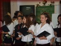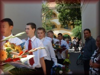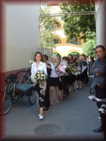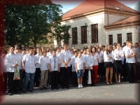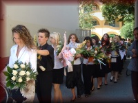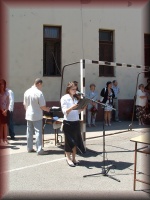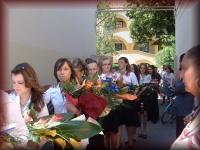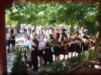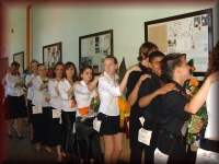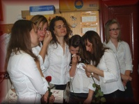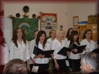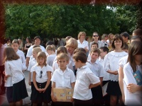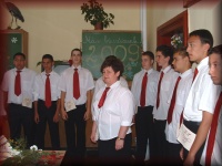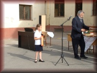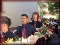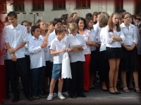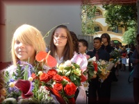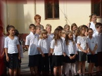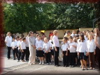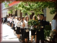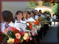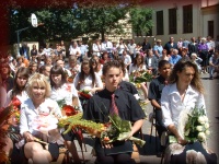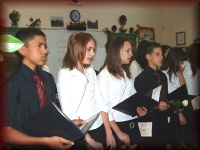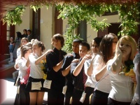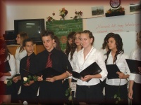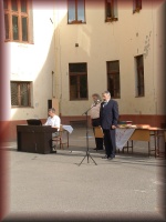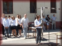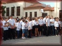 Szerenádoznak a 8. b osztályosok az iskola előtt... |