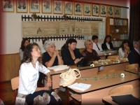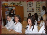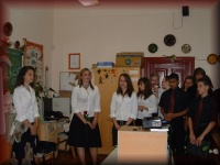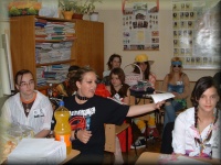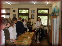 Szabóné Budai Katalin a 8.a osztály előtt |