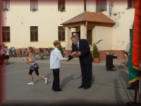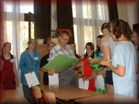 A kitűnő tanulók átveszik a megérdemelt jutalmat. |