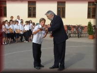 Sprok János tanár úr átveszi a megérdemelt díjat |