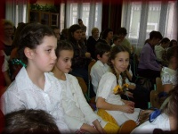 Iskolánk 8.b osztályosai szereplés közben és nézőként...