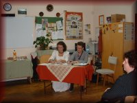 Németh Endréné tankönyvszerző és Hankó Györgyné zsűritagok figyelik a produkciókat