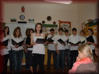 A gyerekek 8 év szülői segítségét köszönik meg verssel, énekkel és ajándékkal
