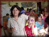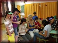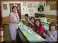 Vida-Szűcs Zsuzsanna tanító néni kézművées foglalkozást tart a kicsiknek |
