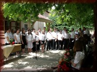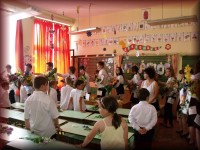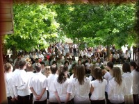 Évzáró ünnepély az iskola udvarán |