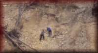 Szemerédi András és Sprok János ásványgyűjtés közben a fehér-hegyi kőfejtőben |