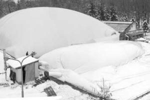 hét közepére elkészült az uszodában a tanmedencét lefedő sátor és befejezték
