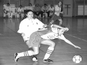 A sorsdöntő harmadik fordulót a sportcsarnokban rendezték meg az elmúlt hét végén, ahol háromszáz néző foglalt helyet. A lelátóról nagy érdeklődéssel figyelték a szurkolók - az edző nélküli együttes helytállását. A forduló első mérkőzése a Bp. Pepita Sárkányokkal kezdődött, amely döntő jelentőségű volt a továbblépés szempontjából. A hazaiak mindent megtettek azért, hogy átlépjék a legjobb négy közé nyíló ajtó küszöbét. Az első perctől kezdve óriási lendülettel rohamozták a fővárosiak kapuját. A 7. percben Körmöczi találatával megindult a gólzápor, és a 11. percben Rosta Eszter megduplázta a Kurca-parti hölgyek előnyét. A 15. percben Milovanovics Lívia is betalált a kapuba (3-0), a 17. percben pedig Kiss Etelka is mattolja a fővárosi Sárkányok kapusát (4-0). A szünetben a Pepitások rendezni próbálták "soraikat", de nem sok sikerrel, mert ismét jön Kiss és Milovanovics találata, és kialakul a 6-0-ás győzelem. További eredmények: Bp. Reac-Szolnoki MTE (11-2), Pepita Sárkányok-Reac (0-16), AL-KO Szentesi TE-Szolnoki MTE (8-1), Bp. Reac-AL-KO Szentesi TE (5-0). A hazaiak az alábbi összeállításban játszottak: Balázsné, Körmöczi, Juhász, Kiss E., Rosta E., cserék: Sebestyén, Zentai, Kiss Á., Csonka, Milovanovics, Bérces, Nana, Tolnai (kapus), Rosta J. (kapus). Megbízott vezető: Kiss Zoltánné. D. V. Z. |