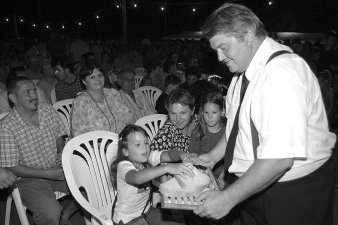 olykor a szirénát is be kellett kapcsolni. Hasonló érdeklődés kísérte a repülőmodelleket - a földön és reptetés közbe is. A Gyovai család férfitagjait is ez a bemutató kötötte le, míg a család hölgytagjai a fák hűvösébe menekültek a babakocsiban szendergő másfél éves kislánnyal. Gyovainé Batta Mária elárulta, ritkán van így együtt a család: anya, apa, nagymama, napapa, két gyerek. Kunszentmártoniak, s most anyósáéknál vendégeskednek. A tízéves kislány a lovastornászok bemutatójában gyönyörködött, de Gyovainé szerint biztosan részt vesz az aszfaltrajzversenyen is, mivel művészeti iskolába, rajztagozatra jár. A színpadon alkalmi "Ki mit tud"-ot rendeztek, nagyon sok bátor kis énekessel, szavalóval, akik mindannyian ajándékot kaptak. Itt "tűnt fel" a helybeli Bacsa Szimonetta, aki négyszer is fellépett produkcióival. A Klauzál általános iskola leendő harmadikosa farsangi ünnepségen szerzett már rutint szereplésben. Nagy kislány már, mi sem bizonyítja jobban, mint az, hogy unokatestvérével, szülők nélkül jöttek. A szervezők szerint a sok lehetőséget rejtő, de ilyen nagy rendezvény szervezésére most még alkalmatlan helyszínen jövőre csak az áprilisi sportmajálist, és az éjszakai sportprogramot kívánják megrendezni. A gyerekek rajzai egy ideig őrzik a szép nap emlékét. Darók József * Éjszakai kispályás labdarúgótorna eredményei: 1. KÁOSZ, 2. FANTA, 3. FIORELLO. A legsportszerűbb csapat: RED STAR. A családi páros teniszverseny: Fiú-férfi: 1. Szentesi Dávid-Sebestyén Péter, 2. Domján fivérek, 3. ifj. Mészáros János-Mészáros János. Leány-apa vagy anya: 1. Bakos Eszter-Bakos László, 2. Gundl Viktória-Menyhárt Andrea, 3. Lakatos Donatella-dr. Lakatos Ákos. Testvérpáros: 1. Csizi Henriett-Csizi Evelin, 2. Brezovai Judit-Brezovai Zoltán, 3. Berezvai Dóra-ifj. Berezvai Árpád. Barátságos női kézilabda-mérkőzés: Szabadidő Sportklub-Hungerit 21:20. |