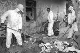megpróbáltak rendet tenni a lakásában. Eleinte nem akart beengedni. Engem