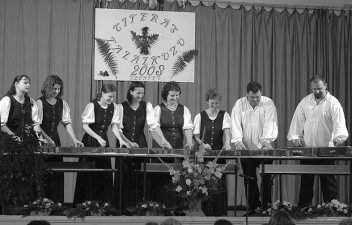 is egymáshoz fűz.Pest és Békés megyei citerások és kórusok is felléptek a szentesi és a környékbeli együttesek mellett a fesztivál hagyományos helyszínén. Ahogy a szentesi Pengető Citerazenekar minden évben megfordul a különböző népzenei találkozókon, ők is meghívnak más együtteseket, akár egy baráti kör. A Lajtha László Zeneiskolában három éve működő citeratanszak mutatkozott be elsőként a találkozón. A gyerekzenekart felnőttek követték, egymás után léptek színpadra a meghívott zenekarok, kórusok. A minősítő versenyeken mindenki feszült egy kicsit, itt viszont örülnek egymásnak a csoportok, tanulnak is egymástól, közös éneklésre csábítják a közönséget, majd vacsorával fejezik be a vidám estét. Mélykútiné Németh Kornélia, aki több minőségben is jelen volt a találkozón, elárulta, hogy minősítőt nem is szeretne itt szervezni. Két minősítő versenyen azért részt vesz a Kornélia októberben, 11-én a nagymágocsi Szivárvány, 25-én pedig a Pengető citerazenekarok vezetőjeként. Mindkét együttes arany minősítésű, ezt azonban kétévente meg kell védeni. Arany minősítésű a Hódmezővásárhelyi Sisáni Asszonykórus is, melynek művészeti vezetője, Pokomándy Zsuzsa foltmozaikjaiból is hozott néhány művet. A művelődési ház előterében nyílt kiállítás a fesztivál idejére a használt ruhaanyagokból, terítőkből készült geometrikus mintázatú alkotásokból. Évek óta rendszeresen eljönnek az asszonykórussal, de Pokomándy Zsuzsa tavaly egyúttal üveg -, előtte pedig ikonfestőként is bemutatkozott Szentesen, s elárulta, lesz még meglepetése. Közelgő névnapja alkalmából szentesi citerások köszöntötték Joós Józsefné Terikét, aki évtizedekkel ezelőtt elindította városunkban a citerás mozgalmat. Azért is nagyon jó egy-egy ilyen találkozó, mert az idősebb generáció is ott hallgatja a fiatalok muzsikáját. A Pengető Citerazenekarra ez különösen helytálló, hiszen az együttesben a legfiatalabb tag tizenkilenc, de a legidősebb is csupán harminchat éves. Kornélia úgy tapasztalta: nagyon sok fiatal népzenész van az országban. Tiszakécskén, egy zenetáborban például a citerások kilencvenkilenc százaléka (!) tizenéves volt, ami jelzi, hogy van jövője a népzenének. Darók József |