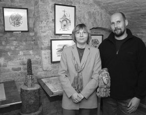 a szobrász munkáira.Ebben Gágyor Jánosné tanárnő állt a segítségünkre. Megnyitóbeszédében sokatsejtetően szólt az alkotókról, a bemutatott művekről. Szabó Mariann grafikus az elmúlt nyár "termésével" várja látogatóit. Horváth Sándor szobrász, aki fából faragja csodálatos dolgait, különböző alkotói korszakaiból mutat be munkákat a tárlaton. Ami közös alkotásaikban: a természet szeretete és tisztelete. Mariann apró sorozatai is a természetről szólnak. Képein Magyarország nevezetes fáit mutatja be, az erdei hangulatról mesél, ábrázolja az ország legszebb madarait. - Ezek a kisméretű, kör alakban készült alkotások átmenetet képeznek a mandalákhoz. Jelentésűk: körbe zárt világ. A mandalák Keleten és Nyugaton minden nép kultúrájában fontos szerephez jutottak. Formavilágukat az egész világon fellelhetjük. Legtöbbjük a belső elmélyülés, a meditáció eszköze. Ezek az alkotások segíteni szeretnének mindenkinek, hogy visszataláljon eredeti önmagához. Mariann hat képén a szobrászat, építészet illusztrációi találhatók. De láthatunk képet Toscanából, a templomról, a térről és az utcáról. És jelen vannak a nyári olvasmányok hatására született alkotásai is. Horváth Sándor első próbálkozásai grafittal készültek, fekete-fehér változatban. Később színesedett a rajz, ehhez párosult a gipsz faragás. Először maszkok, majd alakok készültek. Közel három éve próbálkozott a fa megmunkálásával. Szobrai fantáziadúsak, egy kicsit egzotikusak. Az emberről és a természetről szólnak. A szobrász szerint a fa alakja szabja meg, hogy milyen utat vágjon bele. Minden alkotásában fontos a folyamatosság. A fafaragás és a rajz felváltva születik. Számára aprólékos, összefonódó folyamat a kettő. Munkáiban a természetből vett képek szövik át a szellemet. |