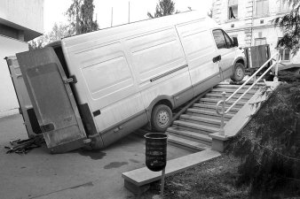 csak megindult az autó és legurult az IH felújított lépcsőjén. Az autó nem