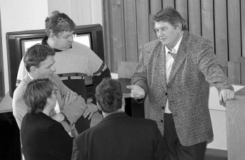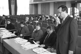 Képünkön: Vita a költségvetésről. Halmai László (állva) érvel,