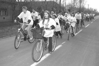 éjszakát.Másoknak kissé korainak bizonyult az ébresztő. Mire kivilágosodott már mind a 7 csapat éppen pályán lévő kerekezője a legjobbját nyújtotta. A kijelölt kör, amit teljesíteni kellett kb. 3,5 kilométer volt, ezt ekkor átlagosan hét és fél perc alatt tették meg. Később már néhányan - kortól, nemtől független - több időt töltöttek a táv teljesítésével. Végül a 15 óra alatt összesen 525 kört kerékpároztak a résztvevők, ez együttvéve 1848 km! Ha így akartuk volna sem valószínű, hogy ez lett volna a végeredmény. A legtöbb kört, 101-et a Deák Ferenc Általános Iskola egyik - profikkal részt vevő csapata érte el. A legtöbb sportolót felvonultató együttes címét a Kiss Bálint Általános Iskola nyerte meg. A legszimpatikusabb társaság tiszasasiak lettek. Végül egy gondolat arról, hogy az elhasznált energia folyamatos utánpótlását, a szervező intézmény, a Damjanich Tagiskola köré csoportosuló, a hékédi városrészben található kisebb üzletek biztosították. Köszönjük! Öröm volt látni, hogy Szentesen közel száz felnőtt és fiatal az ünnepet sporttal, mégpedig a Kurca-parti településen eddig nem nagyon népszerű kerékpározással köszöntötte. Minden eddiginél többen vettek részt március 15-én este a már hagyományos fáklyás felvonuláson. A Damjanich János Tagiskola udvarán ünnepi műsorral kezdődött a program, majd az önkormányzat nevében Szirbik Imre polgármester, az iskola szülői szervezete nevében Hornyik László koszorúzta meg Damjanich János tábornok emlékművét. Ezt követően a több száz résztvevő az iskolát körül vevő, a 48-as tábornokok nevét viselő utcákon vonult végig fáklyákkal, lampionokkal. A diákok korabeli viseletben voltak: 1848-as honvéd sapkákban, valamint Damjanich tábornok katonái által használt sapkákban. |