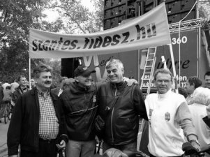 a sok ezer ember között, természetesen ott voltak a szentesiek is.Cseuz László természetesen ide is bringával érkezett, míg mások busszal, vonattal, autóval. A magunkkal vitt narancsszínű molinón a felirat pedig nemcsak a szemeket vonzotta a Vajdahunyad-vár tövében, hanem a régen látott barátokat is. A színvonalas kulturális program után Orbán Viktor azokra a kérdésekre kereste a választ beszédében, miről szól a június 13-i választás, miért kell elmenni és kire érdemes szavazni. A szövetség elnöke szerint a választás legfontosabb értelme, hogy a bizalmunkat élvező, felkészült, hazaszerető emberek képviseljék majd Magyarországot Brüsszelben. Hangsúlyozta: ez a választás arról is szól, hogy ezúttal nem négy, hanem már két év után véleményt mondhatunk róla, megvan-e még a bizalom az ország vezetői iránt. A volt miniszterelnök arra is rámutatott: nem mehetnek jól a dolgok egy országban, ha egyre rosszabbul megy az embereknek. A változást közös erővel ki lehet kényszeríteni - mutatott rá Orbán Viktor. Mint magyarázta, a belépési határt el nem érő pártokra adott voksok elvesznek, így nagyon fontos azokra a szavazatokra vigyázni, amelyek a változást akarják. Amelyek a kórházak privatizációjának leállítását, a közüzemi árak megfékezését, a gazdák támogatását, az otthonteremtési támogatás visszaállítását és a munkahelyek megvédését képviselik. Ezért érdemes a Schmitt Pál vezette csapatra szavazni, amelynek a jelmondata: "Csak együtt sikerülhet!" Nem a hatalomról szól a június 13-i európai parlamenti választás, de az eredménye nagy változásokat indíthat el, és megágyazhatja a Fidesz sikerét a 2006-os parlamenti választásokon - mondta Schmitt Pál, a Szabad Európa Lista vezetője. Beszéde végén bemutatta a listán szereplőket, így a Szentesen már jól ismert dr. Becsey Zsoltot is. Szép és felemelő délután volt. Ami erőt és hitet adott: "Csak együtt sikerülhet!" R. J. |