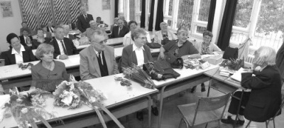 elé engedve végigjárta az iskola tantermeit.A jubileumi ballagásra az ország minden részéből érkeztek az egykori osztály-és évfolyamtársak Vajda Józsefné és Cseh Lajosné (az osztálynévsorban: Sarkadi Sz. Erzsébet és Czakó Eszter) hívására. A 41 végzősből 31-en vannak még életben, s közülük csak kevesen maradtak távol. Ez is bizonyítja, mennyire összetartó volt az 50 éve érettségizett, csupa fiúból álló A osztály és a csak lányokból álló B osztály. Ők még a Tóth József utcába jártak iskolába, a Közgazdasági Technikum akkori épületébe, melyben ők voltak az első évfolyam, s ahol 1954-ben végeztek. A mai fiatalokkal ellentétben nekik talán könnyebb volt az iskola után elhelyezkedni, s Vajdáné példának megemlíti, hogy szinte még meg sem száradt a tinta az érettségi bizonyítványán, amikor már munkába is állt, s azóta is dolgozik. Egy államtitkár is beült újra a régi iskolatársak mellé az iskolapadba. Berényi Lajos a Közgazdasági Egyetemen tanult tovább. Elsőként a Külkereskedelmi Minisztériumhoz, majd az Országos Tervhivatalhoz került, jelenleg a Közbeszerzések Tanácsának elnöki tisztét tölti be. Egyik testvére, Berényi Ferenc később szintén a középiskolában végzett, s ma már a Martfűi Cipőgyár igazgatója. Egykori tanárnőjüktől, Bácskai Mihálynétól az iskola udvarán az ünnepségen az élmények felidézése mellett elhangzott az is, hogy nem fog "bezzegezni", mert a fiatalok szemfényvesztésnek hihetnék. Szigorú tanárnak tartotta magát Kocsis István, az egykori osztály mégis szerette magyartanárát. Most a találkozón bevallotta, ezt a titkot bizony nehezen emészti meg. S hogy nehéz volt-e a számok világában élő egykori diákoknak a magyart tanítani, az idős tanárember azt gondolja, inkább a költő beszéljen, a tanár csak közvetítsen. Darók József |