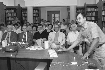 Tímár Ferenc magyaráz (Fotó: Vidovics Ferenc)Június 10-én a városi könyvtárban mutatták be a város új honlapját. A városi honlapok történetét és az új honlapot Tímár Ferenc a TEAM Számítástechnika vezetője ismertette. Mai korunkban már alapkövetelmény, hogy egy település hírt adjon magáról a világhálón is. Szentes 1995 augusztusától található meg a világhálón. Eltelt 9 esztendő, ami az informatika világában közel 9 generációt jelent. Ez idő alatt Szentesnek három honlapja készült el. 2004. június 1-jére elkészült a negyedik, de az eddigi legmodernebb (és talán nyugodtan mondhatjuk, hogy az országban egyedülálló funkcióval rendelkező) városismertető honlapja. Nem csupán a presztízs vezérelte a honlap létrehozóit, bár kétségtelenül hízelgő az a tény, hogy ezentúl a világ bármely pontján, ha valaki Szentesre kíváncsi - miért ne lenne ilyen - egyszerűen megnyitja a www.szentes.hu honlapot, s máris minden információ birtokában lehet. Biztosak lehetünk benne, hogy ki fog alakulni egy teljes körű hálózat hazánkban is, mely nélkül lassan elképzelhetetlen lesz gyors információhoz jutni, előnyös üzleteket kötni, hírt adni tervekről, eladni önmagunkat. Aki hamarabb lép, előnyre tesz szert. Ugyanígy általánossá fog válni az otthoni internet-használat, hogy megkönnyítse tájékozódásunkat, eszköze legyen szórakozásunknak, hobbinknak. Már ma jóval többen vannak az otthoni "hálóbúvárok", mint az a köztudatban szerepel. A bemutató legnagyobb sikere, hogy a levéltáros és helytörténet kutatás kiválóságai is nagyra értékelték az összeállított tartalmat. Mi az, amit a szentesi honlapon talál az olvasó, ha "fellapozza", pontosabban szólva "odaklikk-kel"? A jól áttekinthető szerkezetű menürendszeren keresztül érheti el a városismertető, kulturális, gazdasági és közérdekű városmenedzselő információkat. Első ránézésre kérdezheti a látogató, hogy mi ebben a honlapban az egyedülálló A titok és az egyedülállóság a (hangszóró) ikon mögött rejlik. (Klikk az ikonra!) Ezalatt az ikon alatt olyan konvertált tartalom rejlik, amely az esélyegyenlőséget figyelembevéve a csökkent látóképességűeknek segít az oldalon található szövegtartalom olvasásában. Ez a funkció, pedig nem más mint, hogy az oldal felolvasott hanganyagot rejt magában, és nincs mit tenni mint hátradőlni és végighallgatni a felolvasást. A szövegfelolvasást egy minisztériumi pályázat támogatásával megvalósult program (szoftver) végzi, amely létrehozatala közel 6,5 millió forintba került, de a szoftver fontosságát figyelembe véve az Informatikai és Hírközlési Minisztérium szabadon letölthetővé és felhasználhatóvá tette. Emellett számos információ található városunkról, és annak környezetéről. Egy pár számadat amely az internetes tartalom nagyságát jó példázza. Közel ötórányi szöveganyag hallgatható meg a honlap olvasmányos részeiről. Több mint 400 gépelt szövegoldalt rejtenek az oldalak, és ez csak növekedni fog. Közel 1000 kép adja a teljes honlap vizualitását, ami szintén az idő előrehaladásával növekedik. Ha már a növekedésről beszélünk, akkor kérdezhetjük, hogy mit is jelent ez? Az elkövetkezendő hetekben tovább folyik az oldaltartalom utóellenőrzése, ami a hatalmas szöveganyag miatt több hetet vesz igénybe. A tartalombővülés szempontjából folyamatosan friss hírek kerülnek majd fel a nyitó oldalra (jelenleg a Hogyan juthat el hozzánk? oldal fogadja a látogatókat), és ezzel mindig más arculat fogadja a honlap látogatóit, ezáltal nem válik unalmassá és megszokottá a kezdőlap. |