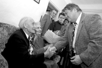 ünnepelték, és itt mondták el újra házassági fogadalmukat.Mihály bácsit kérdeztük, hogy 60 évvel ezelőtt hogyan ismerkedtek meg? - Nagy történet volt az! Én katona voltam abban az időben és Budapesten a 101-es Híradó Ezrednél szolgáltam. Szabadságon voltam itthon és Szentesről utaztam vissza katonatársammal szolgálati helyünkre, amikor a vonaton megpillantottunk egy nagyleányt. A társam, csak annyit mondott, hogy "Nem mered megszólítani!". Én akkor odamentem hozzá, megszólítottam és a nálam lévő egy szál piros szegfűt odaadtam néki. Amikor ő leszállt a vonatról azt kérdeztem, hogy hol lakik? Mária kissé zavartan csak annyit mondott, hogy Sáfrán Mihály utca 22. Ettől a pillanattól kezdve pontosan fél évre rá írtam neki az első levelet, de a címzéssel bajban voltam, mert a címet tudtam, csak a nevet nem. Ezért úgy címeztem a levelet, hogy "Ismeretlen Úrleánynak - Szentes, Sáfrán Mihály utca 22.". A háborús időben nem volt szokatlan ez a címzés és a levelemet újabb levél követte, majd ő is írt. Így kezdődött, majd ezután találkoztunk, és most itt vagyunk együtt közösen, gyermekekkel, unokákkal és dédunokákkal körbevéve. 1945. február 3-án akkor is ugyanilyen havas téli nap volt, amikor Kósa Mihály és Dömsödi Mária, Csákó Lajos és Dömsödi Mihály tanúikkal megjelentek Szentes város házasságkötő termében. Azzal a szándékukkal jelentek meg Csőreg Gyula főszolgabíró úr előtt, hogy külön-külön szőtt terveiket most már közösen valósítsák meg és az együvé tartozásuk jeléül kimondhassák a boldogító IGEN-t! A frigyből három gyermek született (Mihály, Mária, László), akik már családot alapítottak, gyermekeik lettek. Ezáltal a család tovább bővült és öt unoka született (Zoltán, Etelka, Szilvia, Tamás, Gabriella), akik tovább gyarapították a Kósa családot. Az öt unoka családalapításának gyümölcseként öt dédunoka született (Adrián, Nikolett, Attila, Dávid, Csaba). Kép és szöveg: Vidovics Ferenc |