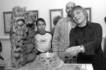 pedig olyanok, akik ezt meg is találják.Jelentem, rátaláltunk a szépre. Annyiból nem volt nehéz, nem kellett sötétben tapogatózni. A három alkotó, Horváth Sándor, Rickert Gyula és Szabó Mariann a főtéri galériába hozta el a csodát. Ha jól emlékszem, legutóbb a Péter-Pál pincében találkoztunk velük. A művekkel. Horváth Sándor vallja önmagáról: "Nem tanultam sem rajzolni, sem faragni. Nem másolok. Mindent, amit alkotok lelkemből és szellememből gyúrom az anyagba, a fantáziám segítségével." Tizennyolc éves kora óta vesz részt kiállításokon. Kezdetben sokáig csak grafitceruzával készült rajzokkal, majd színes rajzokkal, gipszből faragott maszkokkal és figurákkal. Fafaragással ötödik éve foglalkozik. Rickert Gyula idei kiállításának fő vonalát a kollázsok képezik, de munkái közt néhány grafikai lapot is felfedezhetünk. Képei témáiként szerepel az ember és környezete, az emberek közötti kapcsolatok tükröződése, a vizsgálódás, az elmélyülés, a kiút keresése. Szabó Mariann művei főként irodalmi illusztrációk és a hozzá érzelmileg kötődő jelenségek, tárgyak, emberek ábrázolása. A csőtoll, akvarell és színes ceruza mellett a vegyes technikát alkalmazza. Grafikáira jellemző az aprólékos kidolgozottság, könnyed áttekinthetőség és vonalvezetés. Tárlatán válogatások és az ünnepi évfordulóra József Attila verseihez készült illusztrációk láthatók. Virág Tibor (maga is a zene, a zeneművészet területén tevékenykedik)