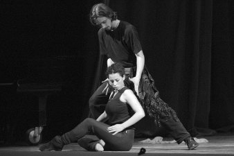 évfolyam bemutatkozott a Tóth József Színházteremben.A gálával egyszersmind a színházi világnap (március 27.) közeledtére is felhívták a figyelmet a drámaisok, de még inkább a tehetségükre és a tagozaton folyó komoly munkára. Elsőként a 9. D osztály kiváló mustrázói egy Nox-dallal nyitották a nézőtéren helyet foglalók füleit, aztán tágra nyíltak a szemek is. Produkciójuk annyira közös volt, hogy a remek egyéni szavalatok, monológok alatt a többiek a színpad szélein csendben álltak végig, majd egymásba karolva táncoltak. A legifjabb dések a Ghymes együttes zenéjére előadott tánca élményszámba ment, s kapta az első vastapsot. A 10. D kiváló mustrázóival csupa lány, és velük a fiatalos humor került a színpadra. Csak egy székre volt szükségük, s a monológokra. Egyéni produkcióikat Majtényi András kísérte zongorán. A táncos műsorszámokért hálás volt a publikum, például az Only Time című Enya-dal gyönyörűen festette alá a kilencedikesek lélegzetelállítóan megkomponált madártáncát. A 11. évfolyam biztosra ment: a latin-mix mindig siker, és közben mindenki színpadra állhat. Az osztályból a vizsga legjobbjai később daloltak is. Börcsök Boglárka (képünkön) saját koreográfiáját álmodta színre, s két diáktársával meg is mutatta, hogyan lehet tánccal és pantomimes mozdulatokkal elmesélni egy drámai történetet. Remélhetőleg a diákszínjátszók országos találkozóján is lenyűgözik majd vele a nézőket. A mostani végzősök közül is néhányan tánccal mutatkoztak be. Önálló kezdeményezésük Aranyi Erzsébet táncpedagógus segítségével valósult meg. A mustragála egyik hagyományos pontja szerint a Színművészeti Egyetemre készülő drámais diákok szólóban is előadják a felvételire tanult dalok, monológok egy részét. Itteni közönségük, a hozzátartozóikból és a diáktársaikból álló nagyérdemű tiszteletét már nemegyszer kivívták tanulmányaik négy éve alatt, de a legbátrabbak nemsokára próbát tesznek szigorúbb ítészek előtt is. A felvételire nem a tanárok javasolják a diákokat, bárki, aki elegendő erőt, tehetséget, szerelmet érez a jelentkezéshez, megteheti. Nyolc drámais készül az idén a legjelentősebb felsőfokú színészképzésre, az első ottani rosta március 31-én vár rájuk. Monológból ötöt, versből tizenötöt, dalból hármat visznek. Nem viszik azonban a gálán előadott közös darabot, melyet Naplóm címmel Keserű Imre és a végzős dések osztályfőnöke, Perjésné Dózsa Erzsébet rendezett erre az alkalomra, s a tanárnő bevallása szerint először csináltak ilyen furcsaságot. A tiszavirág életű darab végén a szereplők egyenként elmondták, hol tartanak negyven év múlva. Egyelőre csak annyi biztos: utoljára láthattuk az osztályt együtt, a ráadás-gála idején már az érettségivel lesznek elfoglalva. Május 26-án a megismételt nagyszabású műsorra a többi osztály várja a nagyközönséget. D. J. |