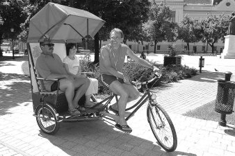 kínai nagyfal hazájában, Pekingben rendezik meg a játékokat. A 2005-ös esztendő sem marad őrült ötlet nélkül a tanár úr életében, mert személyszállítási vállalkozást alapított. Vásárolt egy riksát, mellyel június 1-jétől délutánonként, amikor vége van az iskolai kötelezettségnek, személyszállítást vállal. A jármű igencsak felhívja önmagára a figyelmet, annak hátsó falán látható az eddigi négy olimpiai játék szimbóluma, és van még rajta: egy a 2008-as Pekingi Olimpiáé. - Húsz év telt el azóta, hogy az első ötkarikás túrát megtettem, és ahogy múlik az idő, egyre inkább élvezem a kihívásokat. Ezzel a vállalkozással tulajdonképpen a nyugdíjas éveimre készülök, kiegészítsem a nyugdíjt egy kicsit és mindezt úgy tegyem, hogy közben, azt csinálom amit szeretek. A hobbim a kerékpározás, és azt semmi pénzért nem adnám fel. - Mit lehet tudni a riksáról? - A riksa emberi erővel hajtott háromkerekű közlekedési eszköz, 2-3 személy szállítására alkalmas. A vállalkozói engedély kiváltásakor bajban voltunk, mert nincs olyan, mint a riksás személyszállítás, ezért a tevékenységi kör rovatba Ló fogatú személyszállítás került be egy kis kiegészítéssel: személyszállítás riksával. - Miért jó a riksa? - Mert olcsó, biztonságos, kényelmes, akár 360°-os panorámát nyújt, megmosolyogtatja az embereket, egyedi és természetbarát. - Mennyibe kerül riksázni? - Tervek szerint kilométerenként egy fő szállítása 100,- míg két fő 150,- forintba kerül majd. - Mennyit fogyaszt a riksa? - Teljes mértékben környezetbarát és káros anyag kibocsátása egyenlő a nullával, de félretéve a tréfát, igazából nemcsak a mások szórakoztatása a cél, hanem egy igen hosszú felkészülést is elősegít. - Ha úgy dönt, hogy neki vág a Szentes-Peking távnak, akkor azt riksával teszi meg? - Azért nem vagyok annyira őrült, csak szeretem a kihívásokat. A riksa technikailag sem alkalmas egy ekkora táv megtételére, és ahhoz, hogy ezt a távot riksával tegyem meg, már most el kellene indulnom. Kép és szöveg: Vidovics Ferenc |