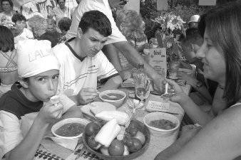 felvétel. (Fotó: Vidovics)A gasztronómusok elhatározták, hogy ez az év legyen a lecsó éve. Azt, hogy hol és kik határoztak erről, igazából nem tudni, de nem is érdekes. A lényeg, hogy ez a mára már szinte magyar specialitásnak számító étel a középpontba került. Az sem biztos, hogy csak magyar étel, hisz az összetevőjének kétharmada, a paprika és a paradicsom néhány száz éve került az európai konyhák asztalára. Magyarországra a Balkánon keresztül érkezett, török-bolgár közvetítéssel. A paradicsom kicsit korábban, a paprika csak az 1870-es évektől terjedt el széles körben. Lecsós ételekkel csak az 1930-as évektől kezdve találkozhatunk a receptkönyvekben. A nyelvészek szerint a lecsó a locsony szó egyik változata, helyenként lecses, lecskesnek nevezik, ami puha-nedvdúsat jelent. 1900-as évek elejétől a falusiak, tanyaiak nyári ételei között a lecsó már általánosan elterjedt. Népszerűségét jelzi, hogy mára a legelőkelőbb éttermek ételei közül sem hiányozhat. A lecsó alapja három zöldség: hagyma, paprika, paradicsom, ezek aránya már nagyrészt meghatározza végső ízt. Igazi, magyaros lecsót a bogyiszlói paprikából lehetett készíteni, de hol van ma már ez a húsos, kemény konzisztenciájú fajta? Helyette több fajtát, más-más érettségi fokban (fehér, zöld, kesely, piros, stb.) ajánlatos használni. Ugyancsak fontos a paradicsom menynyisége, érettsége, egyeseknél az is, hogy a héja rajta van-e. Az íz és a sűrűség egyik meghatározója a vöröshagyma, melyek közül a makóival a legízletesebb, reméljük, még sokáig megtalálható lesz a piacon. Miután a lecsó gyorsan elkészül, ajánlatos a hagymát zsíros, olajon füstölt szalonnán dinsztelni. Az adott három zöldség mellett bármilyen egyéb összetevő hozzáadható: húsfélék, tarhonya, rizs, nokedli, burgonya, stb. Vannak, akik tökkel vagy tejföllel dúsítják, sűrítik. Külön hagyománya van a fűszerezésnek: füstölt ízű legyen, vagy sem, bors vagy őrölt paprika kerüljön bele, de cukor, karamell, vörösbor, stb. is hozzáadható. Egyes helyeken a halászléhez hasonlóan készítik, az úgynevezett "alaplé" itt abból áll, hogy az alaplecsót teljesen péppé főzik, ezután készítik el szinte elölről kezdve az igazi lecsós ételt. Két világháború közötti időben elég sokszor készült lecsó kint a földeken, munkák közben vagy munka végeztével. Később szinte csak a konyhába szorult vissza. Most a bográcsozás újabb lendületével a pörköltek mellett már előfordul lecsókészítés is. Persze nem a hagyományos tojásos, melyet bográcsban nagyon nehéz jól eltalálni, hanem a különböző húsokkal dúsított lecsós ételek. Még el nem felejtem, remélem mások sem, szeptember első szombatja, 3-a, Szentesen a családi lecsófőzési nap. Remélem mindenki ott lesz, aki szereti ezt az egyszerű, de nagyon változatosan elkészíthető magyaros ételt. Dr. Horváth György |