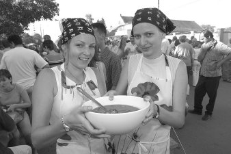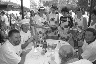 különdíja a Pszichiátria csapatának jutott.A zsűrielnök elmondta még, hogy elgondolkodnak azon, ha jövőre is ilyen sokan lesznek, akkor a zsűri befejezi áldásos tevékenységét, hiszen ennyi lecsót már nem lehet végigkóstolni. A tervek között szerepel az, hogy kisorsolnak három nyertest. Az igazság az, hogy minden lecsó elfogyott, nagy különbség nem volt köztük. Ízlések és pofonok különbözőek. A zsűrizést tizenhárman kezdték, nyolcan fejezték be, öten föladták. Nem betegedtek meg, csak éppen nem tudtak többet enni. Közönségdíjban is gondolkodnak. Különdíjak, ehhez szponzorokat keresnek. - Mindenki boldog volt, mindenki mosolygott - mondja Mészáros Zoltán. Ez egy családi fesztivál. Azt is mondhatom, kibővült a Hunor Coop Rt. családi köre. Igazi, jó hangulatú, vidám fesztivál volt. Öröm volt a bográcsok között sétálni, beszélgetni az emberekkel. Mindenki jó baráttá, családtaggá vált. A hangulatra jellemző, este 10 órakor egy nagymama táncolt unokájával. Együtt voltunk: idősek, fiatalok, a család. Amikor elkezdtük a fesztivált, ez volt a gondolatunk: oldott hangulatú, vidám nap legyen. Érezze jól magát mindenki. Vendégünként, családjuk vendégeként. Jók voltak a sztárvendégek: Baranyi Kati, Solymos Tóni. Egyik legnagyobb siker a hastáncos bemutató volt. Mészáros Zoltán köszöni is mindenkinek, szereplőknek, vendégnek, támogatóknak egyaránt, hogy jól sikerült a családi fesztivál. Külön kiemelte a Dél-alföldi Kertészek Szövetkezetét, akik az alapanyagot adták. Aznap közel 2 tonna zöldséget, paprikát, paradicsomot használtak fel a versenyzők. Még vége sem lett, a rendező Hunor Coop Rt. elnök-vezérigazgatóját máris az ötödikről kérdeztek. Tényleg, milyen lesz? - tettük fel mi is a kérdést. Ígérem sok meglepetés lesz, igazi jubileumi fesztivál - kaptuk a választ. Lovas József (Fotók: Vidovics Ferenc) |