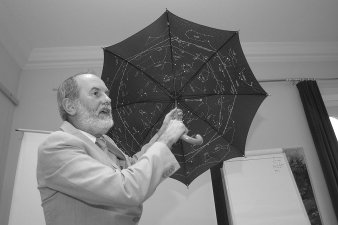 a csillagász, már megcsodálhattuk esernyőjét, melyen az ég, a csillagos