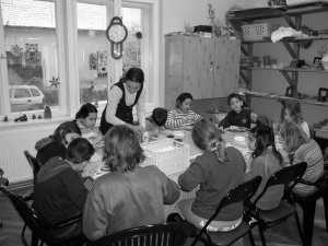 Andrea tanítónő és a gyerekek alkotás közben.A Jövőnkért Alapfokú Művészeti Iskola december 13-16-ig karácsonyi ünnepváró programokkal várta a gyerekeket és szüleiket. - A hetedik éve működő iskola fő hitvallása a mindennapi igényes, színvonalas oktatás és a hagyományainkhoz való ragaszkodás - mesélte Keller Jánosné igazgatónő. Fennállásunk óta tesszük ünnepélyessé a karácsonyvárás időszakát. Szerettük volna benépesíteni ezt a csodálatos épületet, amiben lehetünk, ezért az adventi napok keretében meghirdettük a karácsonyváró délutánokat. Az első délutánt szerettük volna olyan gyerekekkel tölteni, akik - úgy érezzük - még több szeretetet kell, hogy kapjanak, hiszen távol töltik az évet a családtól, mert kollégiumban laknak. Ebben segítettek a Családsegítő Központ munkatársai. Szép számmal jöttek el a gyerekek, és olyan élményekkel távoztak, hogy a következő napokon is visszajöttek. Al-másiné Szaszkó Edit színi játékokra, Ráczné Chikán Gabriella pedig selyemfestésre és ajándékkészítésre invitálta a gyerekeket. Az ajándékokat haza is vihették. A második és harmadik nap délutánján kézműves foglalkozásokat tartottunk, melyek bővültek a gyertyaöntés technikájának megtanulásával. Itt volt Haller Andrea, Oltyán Gyula és Szabó Mariann, akikkel origamizhattak, karácsonyfa- és kerámiadíszeket készíthettek, csomagolástechnikákat tanulhattak. Polgár Abigél nyílt órákat tartott kis balettosaival. A pénteki napot a gyerekkönyvtárban töltöttük. Itt Kéveszkiné Pintér Katalin mézeskalácsot készített a gyerekekkel, Szabó Mariannal origamiztak, és Csorba Ildikóval színi foglalkozáson vehettek részt. A nap záróakkordja Vass Sándor nyílt órája volt a Kiss Bálint Református Általános Iskola tornatermében. Moderntánc csoportjaihoz még a szülők is csatlakoztak. Közel 200 vendég volt itt. - Nagyon jó hangulatú délutánok voltak, de ez is volt a célunk - tette hozzá az igazgatónő. Örültünk azoknak a látogatóknak, akik szüleikkel érkeztek, a csoportoknak és saját tanítványainknak is. Közel 400 vendégünk volt a négy nap alatt. Igazi meghitt alkotó légkör alakult ki a délutánok során, valóban éreztük az ünnep közeledő fényét, mely a gyerekek örömében visszatükröződött. Így szeretnénk folytatni 2006-ban is. Továbbra is legfontosabb szempont az igényes művészeti oktatás, a hagyományaink, és a város gyerekeivel való kapcsolat. Kapuink mindig nyitva állnak. Aktív szakköreink vannak: az egyik a patchwork, a másik a könyvkötészet. Januárban indul OKJ-s fazekas képzésünk, melynek keretében 15 felnőtt kezdi meg tanulmányait. Márciusban nagyszabású kiállítást tervezünk a Galériában, az Ifjúsági és Művelődési Házzal együttműködve. Mester és tanítványa lesz a kiállítás címe, és valamennyi képzőművészeti tanszakon tevékenykedő tanár és tanítványai közösen fognak kiállítani. Nemcsak Szentesről lesznek kiállítók, így betekintést nyerhetünk más települések arculatába is. Az iskola média tanszakos diákjai |