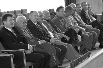 csapat tagjai a városházi fogadáson: Pengő László, Kiss Ottó, ifj. Kádár