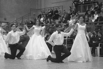 az ünnepségen.A sportcsarnokban felsorakozott, ünneplőbe öltözött fiatalokat többen is köszöntötték, előbb Farkas Sándor országgyűlési képviselőtől hallhatták a biztatást: tanuljanak tovább, nagy szükség van rájuk a magyar társadalomban. A műszaki tanulmányokat folytató diákokhoz szólt Szirbik Imre polgármester is. Egy régi, a Kandón vele megesett történet tanulsága szerint egy műszaki sosem magyarázkodik, ha működik a készülék, rendben van, ha nem, meg kell csinálni – ezt a polgármester egy életre megtanulta. Nagy Gyuláné, az iskola igazgatója ünnepi gondolataiban kifejtette: a diákévekből kilépni készülő fiatalok életének egyik fontos eseménye a szalagavató. A diákokra döntés vár, és meg kell tenniük az utolsó erőfeszítéseket az érettségi előtt. Ha évek múlva a fiók mélyéről előkerül az aznap este feltűzött szalag, szembesülhetnek azzal, mit adott az iskola. Az igazgatónő azt kívánta: a következő célig legyen felhőtlen a diákélet. Az ünnepélyes szalagtűzést versek kísérték, a 11-esek nevében Orosz Helga Reményik Sándor: Akarom című versét, a 12-es Ugrai Stefán Kosztolányi Dezső: Boldog szomorú dalát szavalta. – Itt vagyunk, két különleges osztály, – fordult diáktársaihoz és a hozzátartozókhoz a végzős Lőrincz Gábor. Hoszszú történetbe kezdett első iskolai napjuk felidézésétől, mígnem a csodált negyedikesek nyomdokaiba nem léptek, s az érettségire való felkészülés megkezdődött. Az ünnepélyes pillanatok után az est második felvonására könnyedebb műsorszámokat szerveztek, ilyen volt a zenés emlékkönyv. Képek jelentek meg a kivetítőn, vidám arcokat iskolapados fotókkal váltakoztatva, aláfestésként Cipő és a Republic kórusa dalolt: „Segíts rajtam, ne tévedjek el, Emelj fel, a naphoz emelj fel!“ Közben 12 pár gyülekezett, s angolkeringőjükben gyönyörködhettünk. A szalagavatók elmaradhatatlan színfoltjaként a Szilver táncosai, később az Akrobat Tánciskola növendékei is bemutatóztak. Az iskola színjátszó köre a csarnok közepére tantermet varázsolt, s kifigurázták a tanár-diák viszonyt. Tanári kulcs is repült a nebulók közé, amin a közönség jót derült, felismerve, kire utal a jelenet. A megismételt keringő végén az elsötétülő csarnokban a párok mellett mécsesek gyúltak. D. J. |