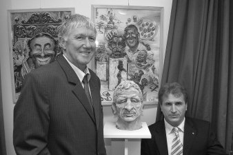Dr. Csíky László és Tónió (Fotó: Vidovics)Magyar Nobel-díjasok portrészobra fogadta a városi könyvtárba látogatókat március utolsó szombatján. Dr. Csíky László portré- és karikatúraszobrász valamint Tónió karikatúrista közös kiállítása nyílt meg ezen a napon. A művészekkel Szűcs Lajos alpolgármester beszélgetett. Fellépőket is hívtak a megnyitóra: Halmai Bianka hegedűjátéka után a Dobbantó Táncegyüttes két tagja, Magyar Nóra és Bagi Ferenc vajdaszentiváni táncokat adtak elő. Szűcs Lajos egy ifjúkori élménnyel kezdte: korábban atletizált, és egyszer a Kinizsi pályán megjelent egy házaspár két rozzant kerékpárral és azt mondták, hogy ők mostantól atletizálni fognak és mellesleg tanítani is. Így is lett. A házaspár dr. Csíky László és felesége volt. Az orvos elmondta, neki a sport életeleme. Emellett rajzol, szobrokat készít és gyógyít. Ötéves korában terrakottából formált egy kis pipáló székelyt, ez volt élete első szobra, ma is őrzi. Apja nagyon tehetségesnek látta, de azt javasolta, tanuljon orvosnak, mert az a jég hátán is megél. Ő történész akart lenni, végül mégis az orvosi karra ment. Vonzó volt számára, hogy Szentes szinte tiszta magyar város, ezért jöttek ide Erdélyből. Felesége matematikatanár, fia diszkoszvető és irodalomtörténész, lánya közgazdasági diplomát szerzett, mindketten külföldön élnek. Csíky László már általános iskolában rajzolt, eleinte tanárait ábrázolta groteszk módon. Tónió is a tanárai karikatúrájával kezdte. Később az iparművészeti egyetemen is az oktatóit és az évfolyamtársait rajzolta le. Egy kollégája tanácsolta, hogy próbáljon meg politikusokat rajzolni. Fotók alapján ábrázolta őket, és ez annyira jól ment, hogy egy év múlva bekerült a Ludas Matyihoz. Címlapokat készített az újságnak. Egyszer felkereste telefonon egy tévés társaság, amely politikai bábműsort akart indítani, és kérték, hogy próbáljon meg ilyen figurákat tervezni. Ez volt az Uborka című műsor, melyben Tónió tervezte bábokat láthattunk. Dr. Csíky László munkáiban meglátta azt a tehetséget, ami az ő művészetéhez párhuzamosan passzolna. Körülbelül egy éve együtt állítanak ki országszerte. Tónió elmondta, hogy alkotás közben nagyon pontosan próbálja leképezni a látványt, ami előtte van. Tökéletesen tud koncentrálni, ilyenkor semmi nem zavarja. Ahogy összerakja a részleteket, igyekszik felnagyítani az átlagtól eltérő dolgokat az arcon. A két művész valójában viszszaadja azt, amit mi is hasonlóan látunk, csak nekünk nincs eszközünk a megjelenítésükre. Két leleplezés történt a kiállító teremben: Szűcs Lajos és Tónió karikatúraszobrát készítette el Csíky László, majd negyedóra alatt megalkotta a közönség előtt Gyurcsány Ferenc miniszterelnök szobrát. Tónió karikatúrákat készített, többek között az alpolgármesterről is. A kiállítás legtöbb darabja politikusokat, közéleti szereplőket ábrázol. Április 14-ig megtekinthető a könyvtár nyitva tartási idejében. Majzik Andrea |