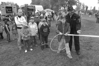 Majd a sportpályára vonultak, ahol az érdeklődők megtekinthették a tűzoltóautókat közelről.