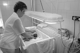 Az újszülötteknél, koraszülötteknél előforduló sárgaság kezelését elősegítő lámpát akkor használják, amikor az újszülött sárgább, mint a megengedett és a kivizsgálás azonnali megkezdése mellett kezelik is a babát. Enyhe esetben elég lehet a fokozottabb folyadékbevitel (teáztatás, nagyobb adagú szopás, infúzió), különösen, ha nagy volt az újszülött súlyvesztése. Kórosan magas szérumbilirubin-szint mellett eleinte elegendő az ún. kékfény-kezelés, amikor UV-fényt sugárzó lámpa alá fektetik (inkubátorban) a ruhátlan gyermeket, hogy a bőrben megtörténhessen a bilirubin vízben oldható formává alakítása. Amennyiben ez a kezelés nem segít, vércserére is szükség lehet.