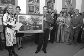 Bitó János, egy szegedi gobelináruház igazgatója mesélt a gobelin történetéről. Többek között elmondta, hogy régen is sok festőművész dolgozott a gobelin műhelyeknek. Szamosközi Antal megélhette, hogy műveit kézimunkákon láthatja. Szamosköziné Tünde elmondta, hogy bár kevés volt az idő, hogy a munkák elkészüljenek, nagyon sokan neveztek. A pályamunkákat kiállításra alkalmas formában, keretezve kérték. A hattagú zsűri munkáját dr. Kun Edit festőművész, jogász értékelte. Rendkívüli kíváncsisággal várta ezt az egyedülálló kezdeményezést. Elsőként írták ki országos szinten a különleges pályázatot, melynek témája egy élő, kortárs festőművész festményeiből készült reprodukciók készítése volt. Ezek gobelinkép formájában testesültek meg. A gobelin őshazájában, Franciaországban a szövött faliképeket nevezik így, nálunk az apró öltéstechnikával készült hímzést. Művészi alkotások ezek a képek, művészet pedig nem létezhet tehetség nélkül, ez utóbbi pedig kitartó munka nélkül. Két kategóriában lehetett pályázni: normál lyukú és tűparavánra nyomtatott, kivarrt, keretezett képekkel. 113 alkotó 155 alkotása érkezett, melyeket 8 pontozással minősítették. Sokféle szempontot vettek figyelembe, de elsődlegesen az esztétikumot, a színek és formák harmóniájának megvalósulását keresték. Nagy hangsúlyt fektettek a varrási technikára. Sok kimagasló alkotás volt, különleges technikákkal is dolgoztak, például gyönggyel is hímeztek. A legfiatalabb pályázó 17 éves, a legidősebb egy 80 éves hölgy volt. Egy férfi alkotó által készített gobelin kép is érkezett. Több különdíjat felajánlottak az alkotóknak. Két fődíjat sorsoltak ki kategóriánként: egy-egy eredeti Szamosközi Antal olajfestményt keretezve. A Liliomok című képet Gulyás Ervinné (Harta) nyerte, az Este a tanyán című képet pedig Ölveti Ildikó (Debrecen). Minden pályázó egy tűgobelint kapott ajándékba. A kiállítást december 14-ig tekinthetik meg az érdeklődők, hétfőtől péntekig, 9-16 óráig. M. A. |