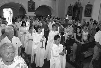 A templomi búcsút ünnepi szentmise zárta, melyen a liturgiát dr. Kiss-Rigó László püspök celebrálta, aki egyébként először mutatott be szentmisét városunkban. Dr. Kiss-Rigó László köszöntő szavaiban először üdvözölte a katolikus híveket, a város lakosait, valamint az alkalmon megjelent országgyűlési képviselőket, Szirbik Imre polgármestert és Farkas Sándort, Magyar Annát, a Csongrád Megyei Közgyűlés elnökét és az önkormányzati képviselőket. Ezt követően arra emlékeztetett mindenkit, hogy ma is személyenként és közösségben egyaránt a történelemben élünk. Úgy, ahogyan a szentmise elején a körmenet, a bevonulás is arra hívta fel a figyelmet, hogy állandóan úton vagyunk. A szentesi gyülekezet is sokat tett már a múltban, azonban a jövőben számos feladat vár még rá. Majd a szentbeszédben a püspök arra emlékeztette, a jelenlévőket, hogy a templom építésének évfordulója mellett ezen a napon Szent Annára, Jézus Krisztus nagymamájára is emlékeznek a katolikusok. Vele együtt pedig a nagyszülőkre és a családra is, illetve a gyülekezetre, mely szintén egy családi közösség. Dr. Kiss-Rigó László elmondta, hogy a családdal kapcsolatban az embereknek vannak negatív tapasztalataik is, még akkor is, ha csak az egyház életét nézzük. Évszázadokon keresztül a pápa és a püspökök saját családjukból emeltek ki embereket a vezető pozíciók betöltésére. Ma is vannak olyanok, akik rokonaikat juttatják előnyhöz, s nem a rátermetteket. Majd arról beszélt, hogy Máriát sem csupán Krisztus anyjaként tiszteljük, hanem Jézus egyik legkiválóbb követőjeként is. Szent Annára pedig azért is emlékeznünk kell, mert lánya nevelésében kiemelkedő példát nyújtott. Majd a püspök rámutatott arra, hogy az Istennel és az emberekkel való kapcsolat egyaránt fontos az életben, mégpedig az érdekérvényesítés nélküli kapcsolat. Hisz az emberek hajlamosak arra, hogy még a számukra unszimpatikus embereknek is hízelegjenek, ha érdekük fűződik hozzá. Hasonlóképp alkudozunk sokszor Istennel is, úgy ahogyan teszi ezt Ábrahám is, mikor Sodomárért és Gomoráért könyörög. Pedig az Úr látja és tudja, hogy mire van szükségünk. Imádságainkban ezért ne alkudozzunk, hanem egyszerűen szólítsuk őt Atyának, s kérjünk erőt ahhoz - ahogyan az ünnepi szentmise résztvevői is tették -, hogy családunknak, közösségeinknek, városunknak és nemzetünknek legyen erőnk példát mutatni életünkkel.