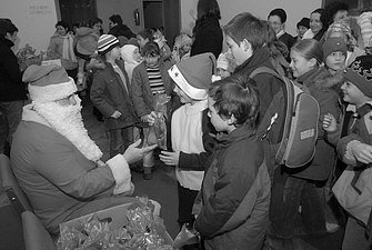 Sok apró gyermek keze nyúlt az ajándékcsomagért