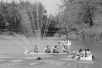 Baloghné Berezvai Csilla a berendezések működéséről is beszélt lapunknak. Megtudtuk tőle, hogy a vízoszlopok legmagasabb szárnya 7-9 méteres, a sugarak nagysága azonban a széle fele csökken. A szökőkutaknak 5 lóerős motorjuk van a víz alatt, a pumpák is a víz alatt helyezkednek el vízszintesen, az úszótest alatt. Négyszer 500 wattos lámpatest világítja meg a vízsugarakat, s az úszótest is feszültség alatt van, tehát nem javallott megfogni vagy szétszerelni azt. A pumpa és a világító berendezés működése pedig programozható.