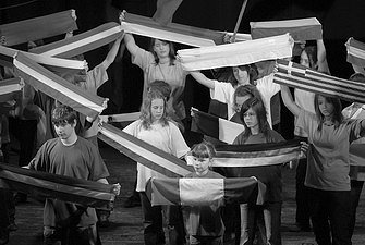 A pályázat szerint Európát kell megjeleníteni a színpadon, aki - mint megszemélyesített szereplő - az egymás mellett élő európai népek egységét, összefogását igyekszik megteremteni. Ő az, aki a három XX. században játszódó történetet öszszeköti. Az olaszok a bányákban embertelen körülmények között dolgozó gyerekeket és álmaikat mutatták be. A franciák a mai korba vitték el a nézőt, a személytelen világunkban a szerelem sem igazi érték, csak egy röpke kaland, ám annál több bántással és fájdalommal jár. A magyar gyerekek a padláson könyvet lapozgatnak. A cédulák és a dokumentumok egy emberéletet jelenítenek meg, miközben a magyar történelmi múlt is láthatóvá és hallhatóvá válik. A történelem pedig nem fukarkodott, volt itt világégés, kommunizmus, forradalom és megtorlás. Az '56-os eseményekre Nagy Imre egykori miniszterelnök szavai utaltak. A múlt összekapcsolódik az egyéni sorssal.
