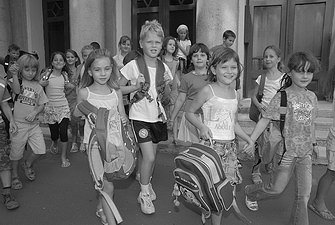 Gyerekek egy csoportja a Petőfi iskolánál