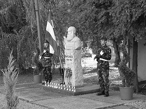 A tizenhárom vértanúra, köztük Damjanich Jánosra emlékezve helyezte el a megemlékezés koszorúit Nyers József mk. ezredes vezette parancsnoki állomány, a zász-lóalj nevében, valamint a HODOSZ képviselete a laktanyában elhelyezett Damjanich honvédtábornok mellszobornál.