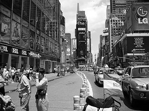 Sok képet készített, ahogy haladt a Broadwayon (képünkön) egészen a Szabadság-szoborig, betért a Central parkba is, ahol éppen egy koncertet tartottak. Délután 2 óra tájban a George Washington hídon elhagyta New Yorkot.