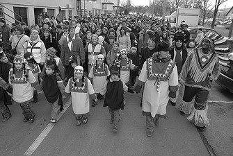Délután a sportcsarnok előtt több száz ember gyülekezett, várták, hogy elinduljon a menet az ifjúsági parkba. Szlovén busók pattogtatták ostoraikat, a maskarások kolompjaikat rázták. A központi ABC környékén garabonciások "támadtak" a kíváncsiskodókra. A gólyalábasok érdekes produkciót mutattak be: hogyan lehet ugrani akkora lábakon.