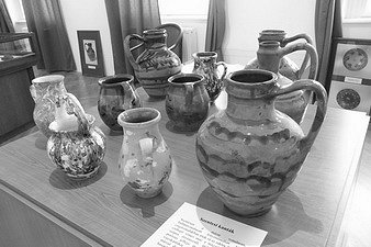 Fotókkal illusztrált magyarázó szövegek segítik a témában való elmélyülést a különböző munkafázisokról, mint az agyaglapátolás, mázőrlés, korongozás, az edények szárítása -és díszítése, berakásuk a kemencébe. Egy zöld mázas butellát is láthatunk, mely támpontul szolgál alkotóját illetően: az edény felirata szerint Vas János korsósmester műhelyéből került ki 1844-ben. Városunkban ekkortájt jelentek meg ezek a pálinka tartására szolgáló díszedények. A tárlat bemutat továbbá szilkéket, köcsögöket, tányérokat, kantákat, fazekas szerszámokat, s megemlékezik egy 1912-es fazekas tanfolyamról, mely a múzeum akkori, ligeti épületében folyt. Mivel ezt a képzést vándoroktató tartotta, ezeknek a szintén kiállított daraboknak az érdekessége, hogy motívumaik teljesen eltérnek a helyi hagyományoktól, nem tudtak itt meghonosodni.