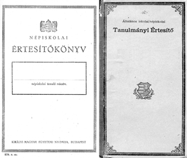 Bizonyítvány az államosítás előtt és után1945 tavaszán megkezdődött a hazai közoktatás átszervezése. Az ideiglenes nemzeti kormány 1945. aug. 16-án miniszterelnöki rendelettel intézkedett az új nyolcosztályos általános iskolák létesítéséről, és a tankötelezettség 14 éves korig való felemeléséről. A rendelet kitért az általános iskolák ingyenes és kötelező voltára, feladatául pedig a 6–14 éves gyermekek számára azonos műveltségi anyag közvetítésével azonos műveltségi szint elérését jelölte meg. 1946-ban jelent meg az általános iskolai tanterv, melyben a humán és természettudományos tárgyak egyensúlyban voltak, ötödik osztálytól kezdve kötelezően szerepelt egy élő idegen nyelv, mely lehetett a korábban előírt német helyett angol, francia vagy orosz is. Választható volt a latin nyelv, vagy a kereskedelmi és gazdasági ismeretek tanulása. 1946/47-ben többségében még az egyházak működtették az általános iskolákat. Országosan 1216 katolikus, 513 református, 168 evangélikus, 14 ortodox, 11 izraelita és 1 unitárius általános iskolában folyt oktatás. Ugyanekkor 594 állami és 340 községi fenntartású iskola állt a 6–14 éves korosztály rendelkezésére.